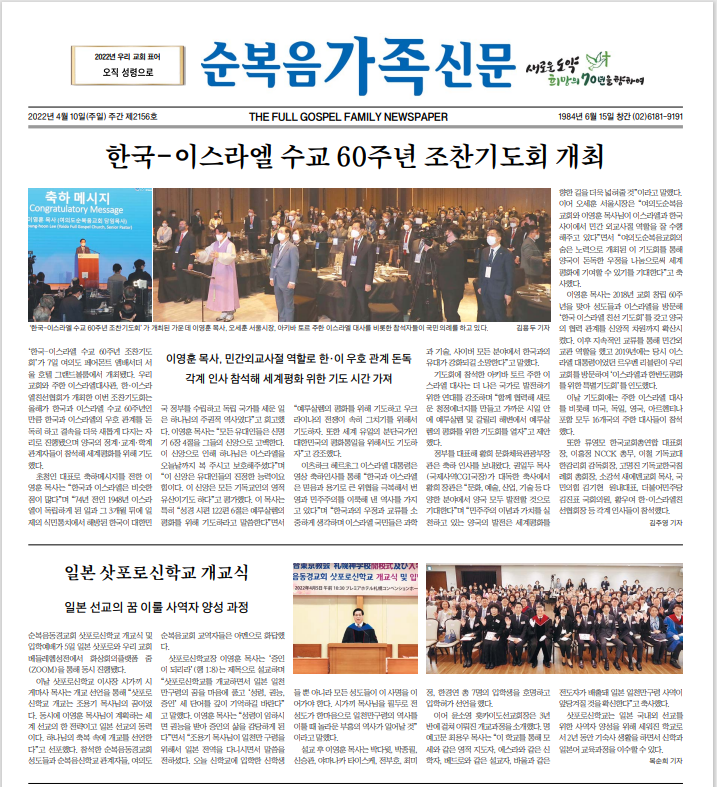 삿포로 신학교 개교식의 모습이 4월 10일자 순복음 가족 신문에 소개되었습니다.