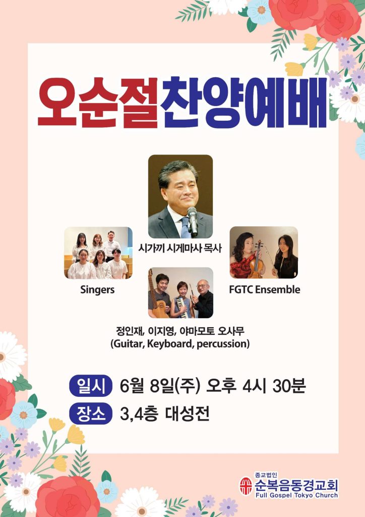 6월 8일(주일) 오후 4시30분부터 오순절 특별찬양예배를 드립니다. 적극적으로 참가하여 성령강림의 은혜를 받으십시오.