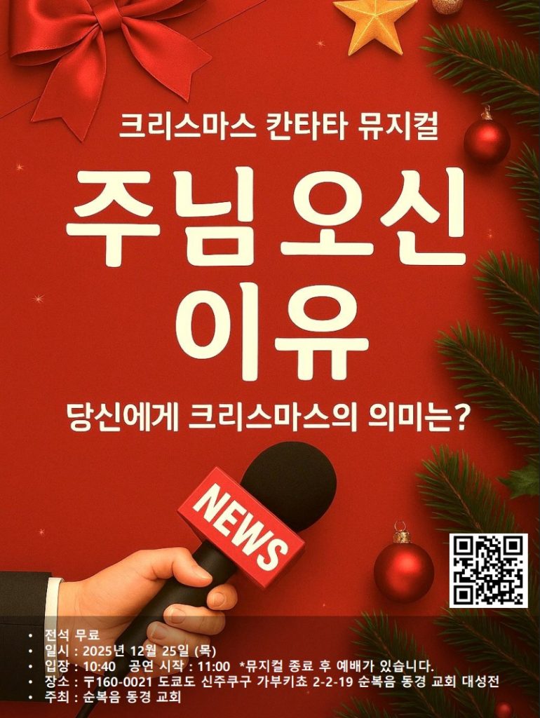 크리스마스 칸타타 뮤지컬이 12월 25일 (목) 11시부터 있습니다. (개장 : 10시 40분)