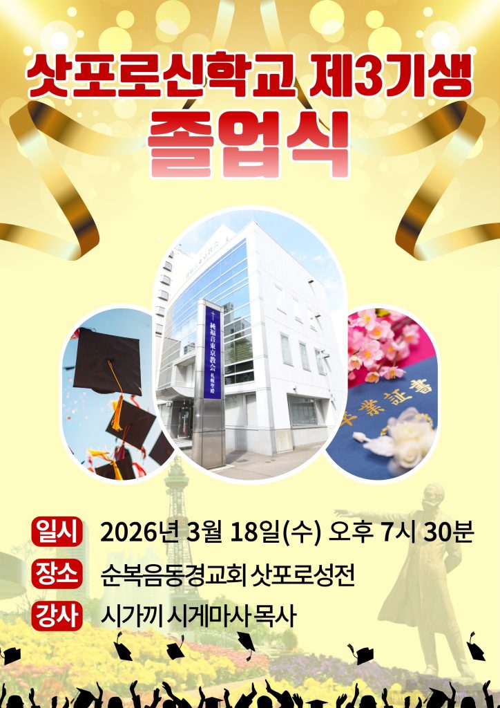 3월 18일 19시 30분에 삿포로신학교 3기생 졸업식이 있습니다.