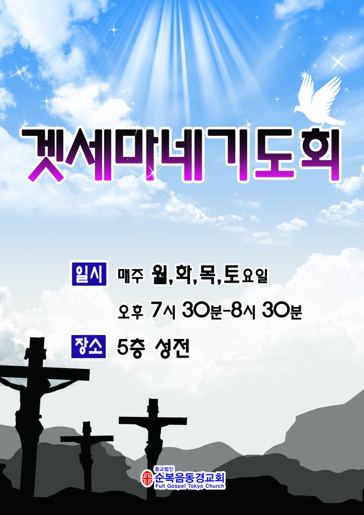 7월부터 매주 월, 화, 목, 토 오후7시30분~8시30분에 5층 성전에서 겟세마네 기도회가 있습니다. 기도하시고 싶은 분은 누구라도 참가가능합니다.