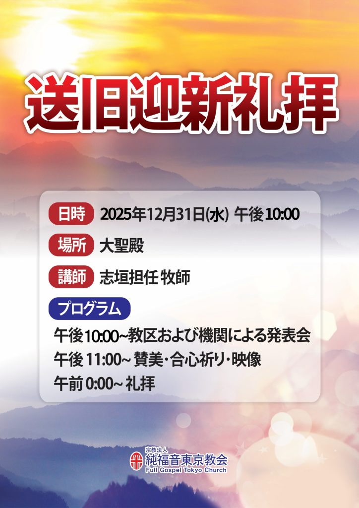 12月31日午後10時から送旧迎新礼拝が捧げられます。
