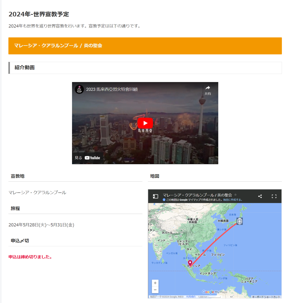 2024年に予定されている志垣重政担任牧師の世界宣教旅行の予定と宣教地の情報を以下のリンクで確認ができます。 HP: https://fgtc.news/worldmission2024