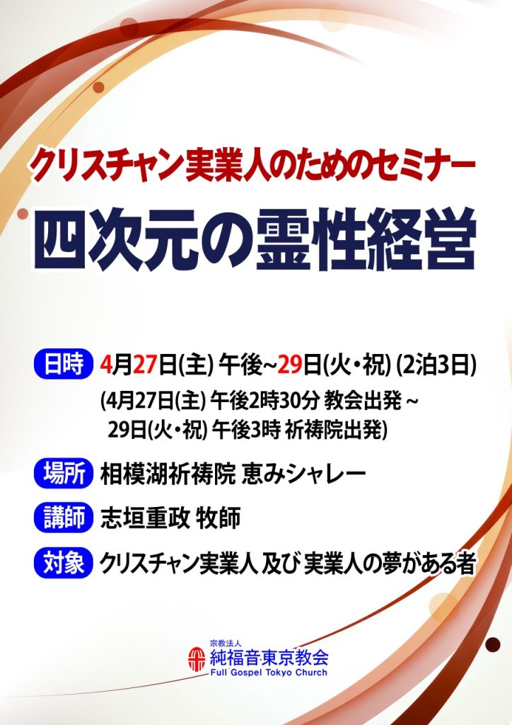 4月27日(主)~29日(火)クリスチャン実業人のためのセミナー「四次元の霊性経営」