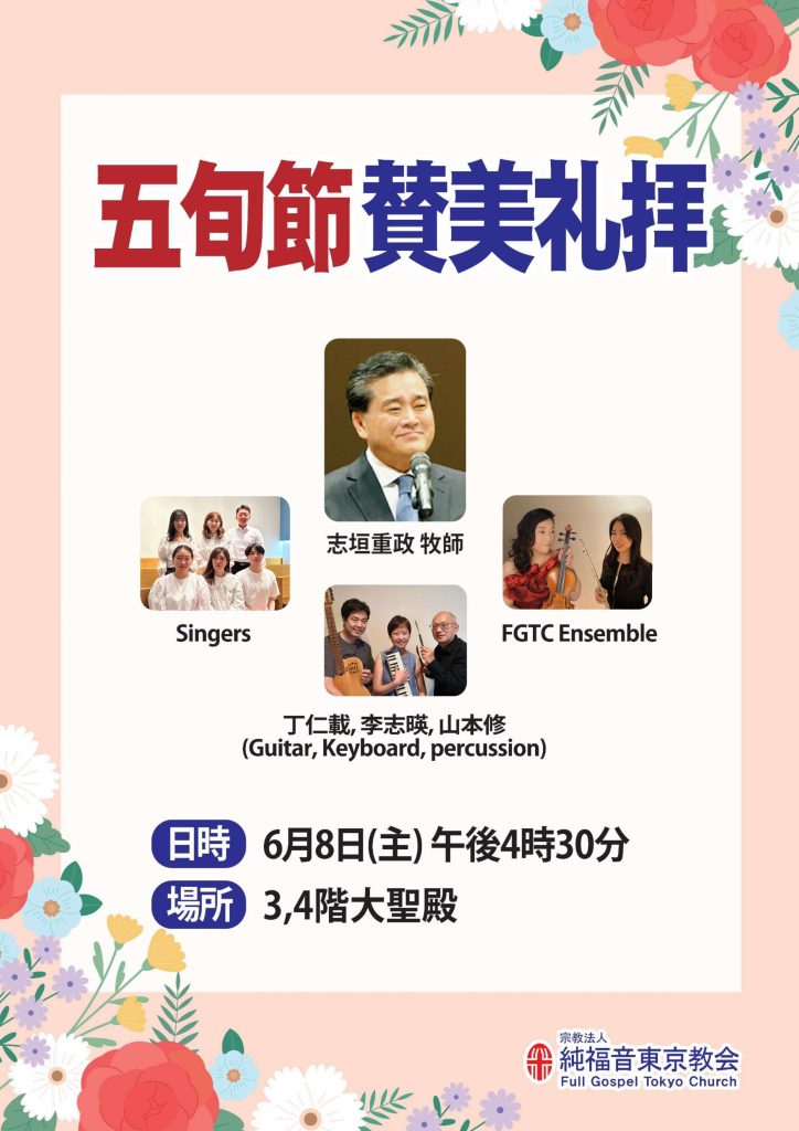 6月8日(主)午後4時30分から五旬節特別賛美礼拝を捧げます。積極的に参加し、聖霊降臨の恵みを受けましょう。