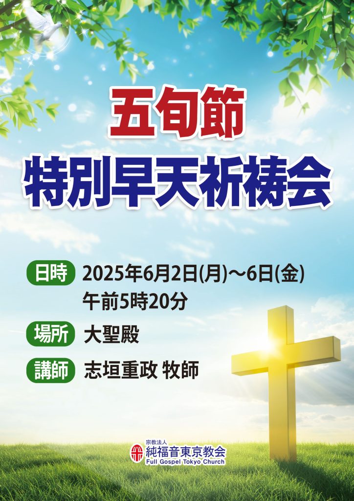6月2日(月)~6日(金)、毎朝午前5時20分から五旬節特別早天祈祷会が行われます。